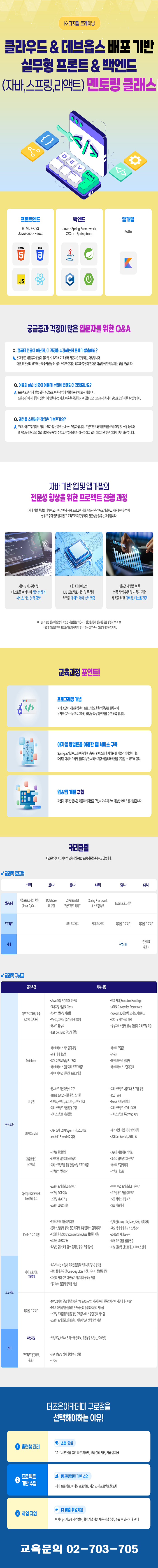 | 제목 | 클라우드 & 데브옵스 배포 기반 실무형 프론트 & 백엔드(자바, 스프링, 리액트) 멘토링 클래스 | ||
