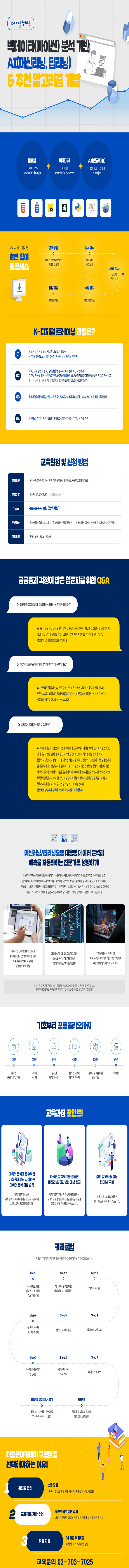 | 제목 | 빅데이터(파이썬) 분석 기반 AI(머신러닝, 딥러닝) & 추천 알고리즘 개발 과정 | ||