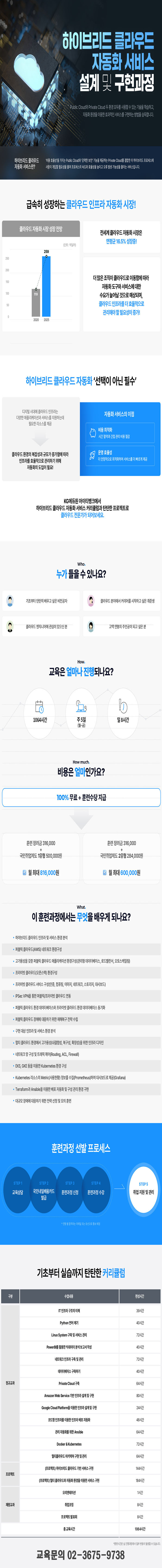 [KG에듀원 아이티뱅크 노량진점] 과정명 : 하이브리드 클라우드 자동화 서비스 설계 및 구현과정 교육문의 : 02-3675-9738 교육일정 : 2026년 03월 23일 ~ 2026년 09월 18일 (6개월) 교육시간 : 09:00 ~ 18:00 홈페이지 : www.kgitkorea.com