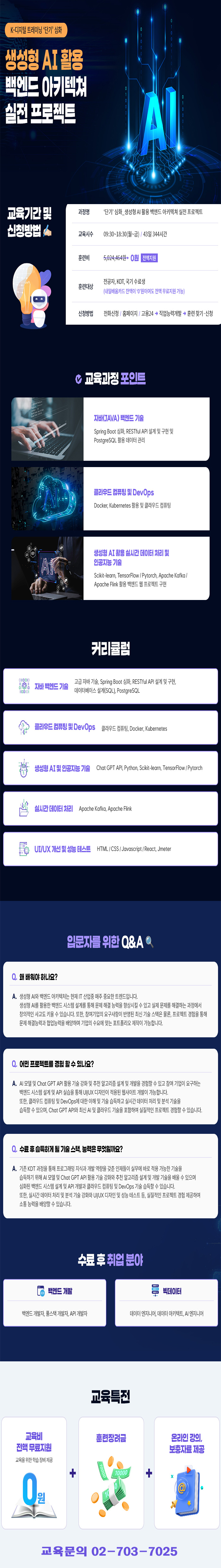 | 제목 | (심화과정) 생성형 AI 활용 백엔드 아티텍쳐 실전 프로젝트 | ||